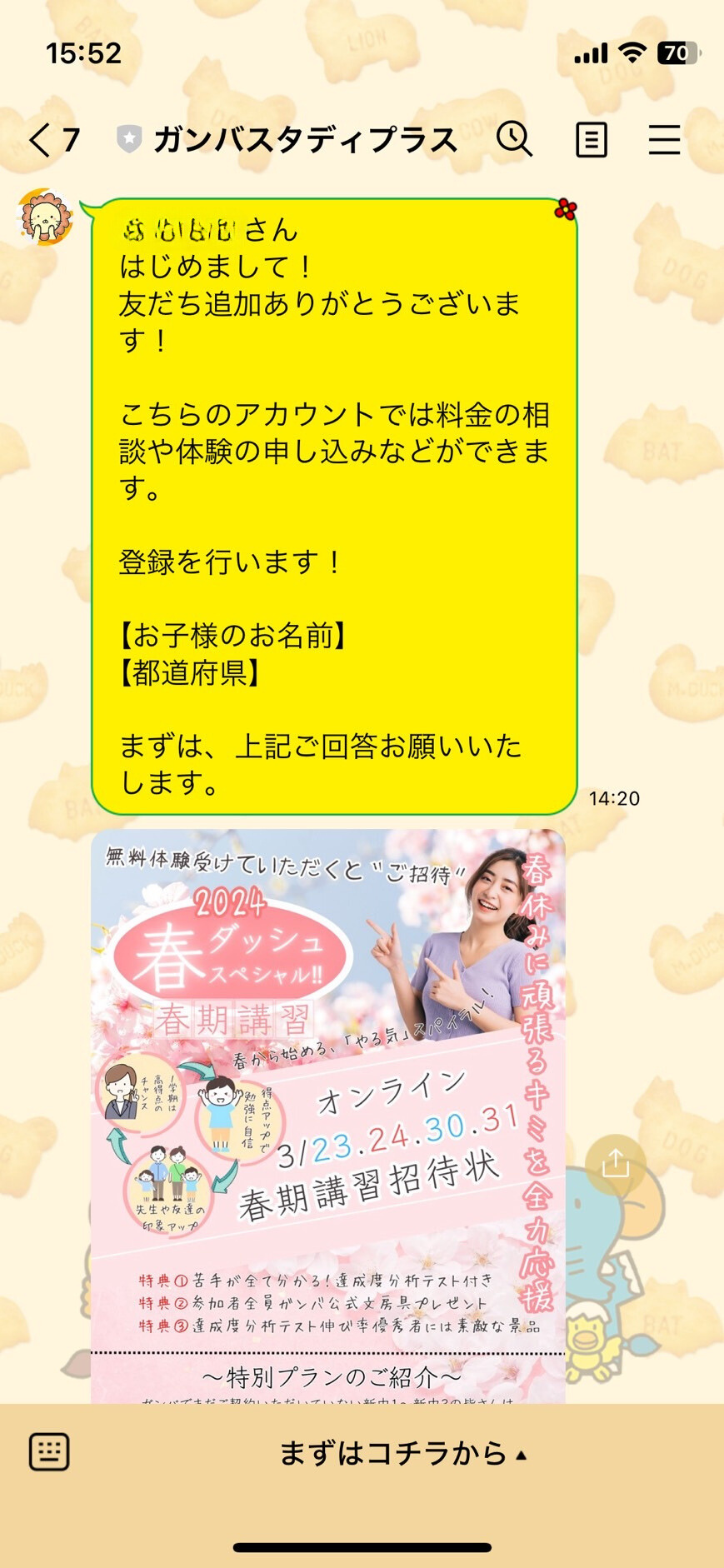 スタディプラス公式ラインを登録し入会してくれた方限定
